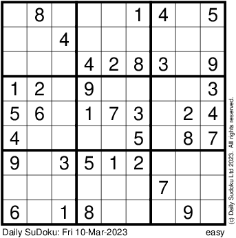 The Daily SuDoku: Fri 10-Mar-2023