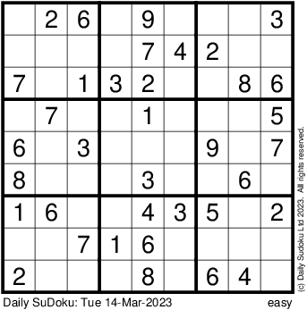 The Daily SuDoku: Tue 14-Mar-2023