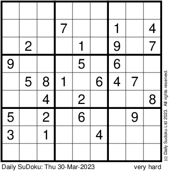 The Daily SuDoku: Thu 30-Mar-2023