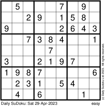 The Daily SuDoku: Sat 29-Apr-2023