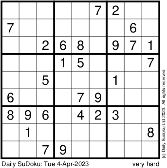 The Daily SuDoku: Tue 4-Apr-2023