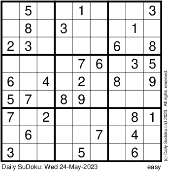 The Daily SuDoku: Wed 24-May-2023