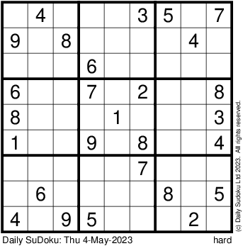 The Daily SuDoku: Thu 4-May-2023