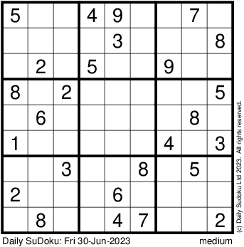 The Daily SuDoku: Fri 30-Jun-2023