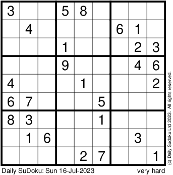 The Daily SuDoku: Sun 16-Jul-2023