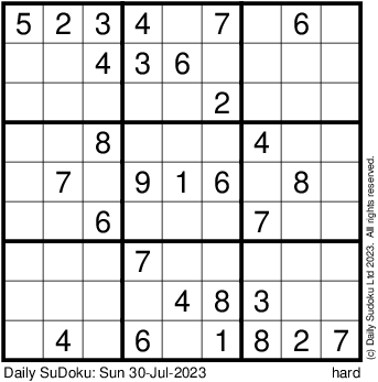 The Daily SuDoku: Sun 30-Jul-2023