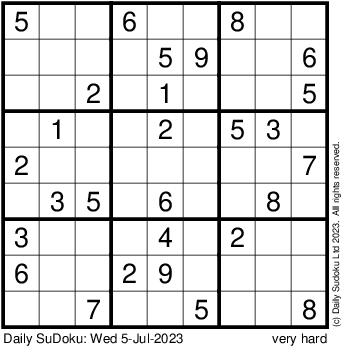 The Daily SuDoku: Wed 5-Jul-2023