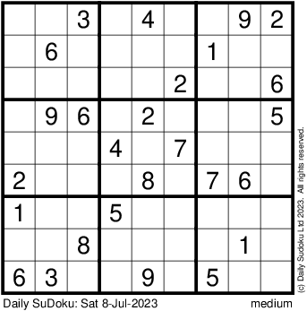 The Daily SuDoku: Sat 8-Jul-2023