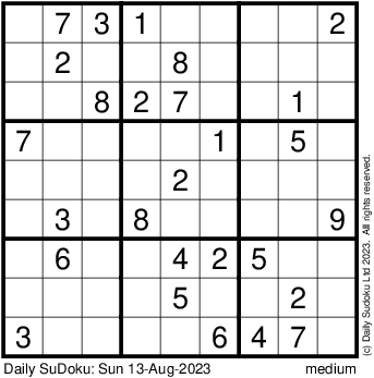 The Daily SuDoku: Sun 13-Aug-2023