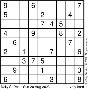 The Daily SuDoku: Sun 20-Aug-2023