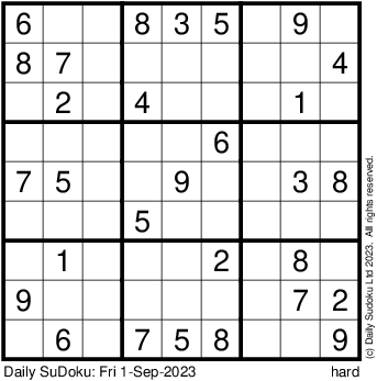 The Daily SuDoku: Fri 1-Sep-2023