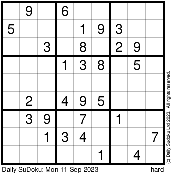 The Daily SuDoku: Mon 11-Sep-2023