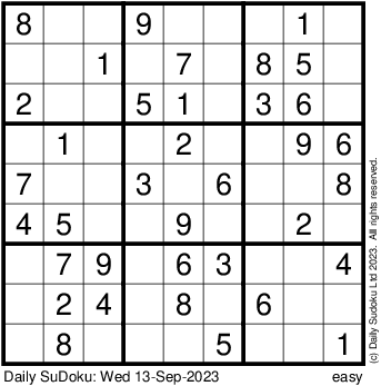 The Daily SuDoku: Wed 13-Sep-2023