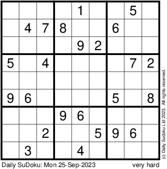 The Daily SuDoku: Mon 25-Sep-2023