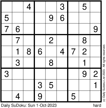 The Daily SuDoku: Sun 1-Oct-2023