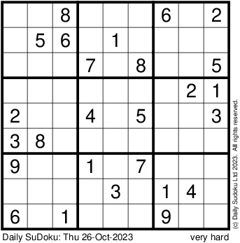 The Daily SuDoku: Thu 26-Oct-2023