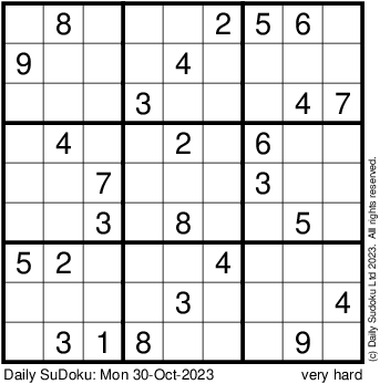 The Daily SuDoku: Mon 30-Oct-2023