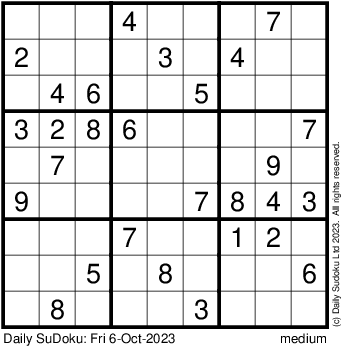 The Daily SuDoku: Fri 6-Oct-2023