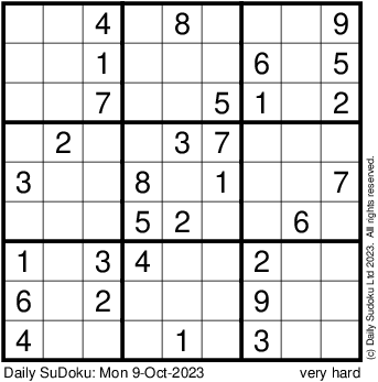 The Daily SuDoku: Mon 9-Oct-2023