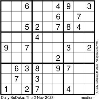 The Daily SuDoku: Thu 2-Nov-2023