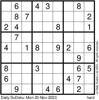 The Daily SuDoku: Mon 20-Nov-2023