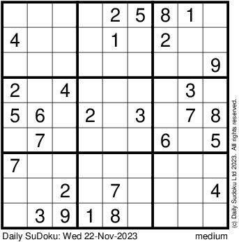 The Daily SuDoku: Wed 22-Nov-2023