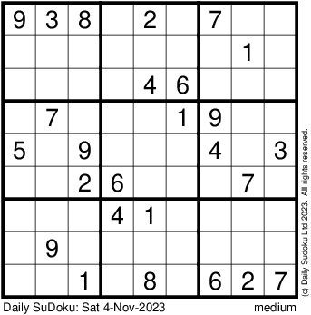 The Daily SuDoku: Sat 4-Nov-2023