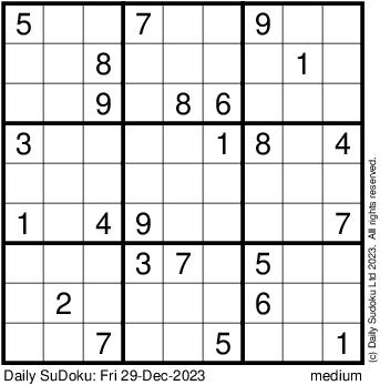 The Daily SuDoku: Fri 29-Dec-2023