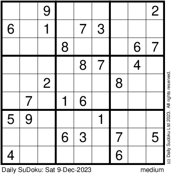 The Daily SuDoku: Sat 9-Dec-2023