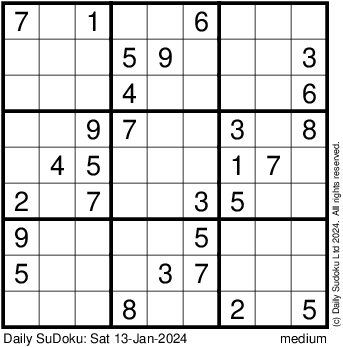 The Daily SuDoku: Sat 13-Jan-2024