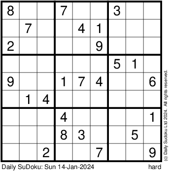 The Daily SuDoku: Sun 14-Jan-2024