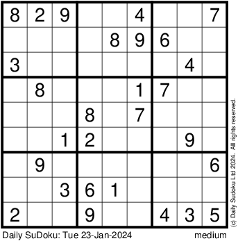 The Daily SuDoku: Tue 23-Jan-2024