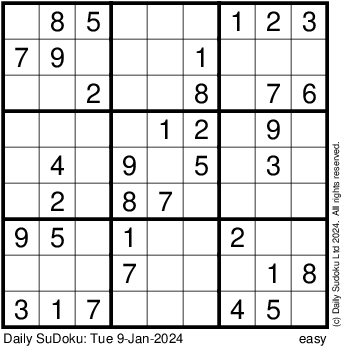 The Daily SuDoku: Tue 9-Jan-2024