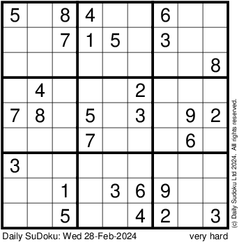 The Daily SuDoku: Wed 28-Feb-2024