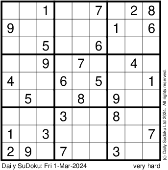 The Daily SuDoku: Fri 1-Mar-2024