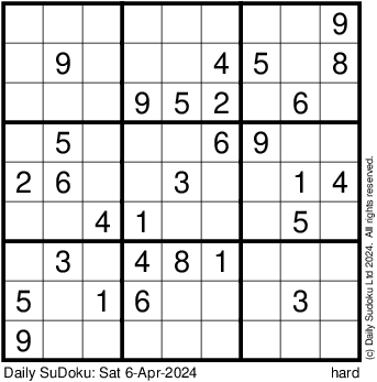 The Daily SuDoku: Sat 6-Apr-2024