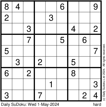 The Daily SuDoku: Wed 1-May-2024