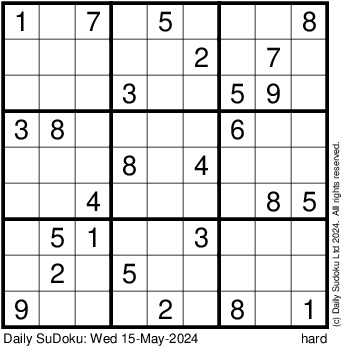 The Daily SuDoku: Wed 15-May-2024