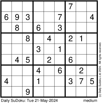 The Daily SuDoku: Tue 21-May-2024