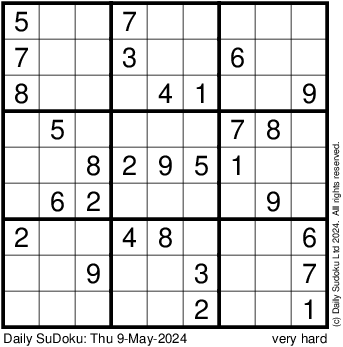 The Daily SuDoku: Thu 9-May-2024