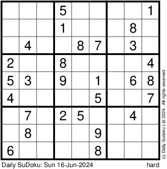 The Daily SuDoku: Sun 16-Jun-2024
