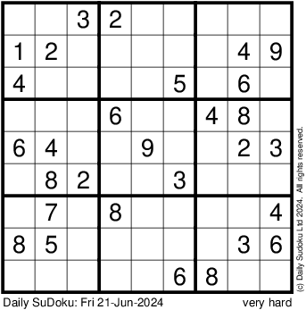 The Daily SuDoku: Fri 21-Jun-2024