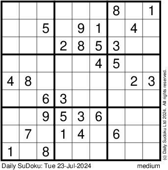 The Daily SuDoku: Tue 23-Jul-2024