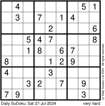 The Daily SuDoku: Sat 27-Jul-2024