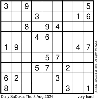 The Daily SuDoku: Thu 8-Aug-2024