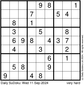 The Daily SuDoku: Wed 11-Sep-2024