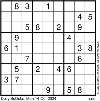 The Daily SuDoku: Mon 14-Oct-2024
