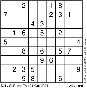 The Daily SuDoku: Thu 24-Oct-2024