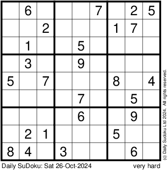 The Daily SuDoku: Sat 26-Oct-2024