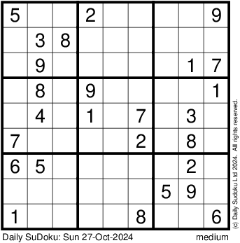 The Daily SuDoku: Sun 27-Oct-2024